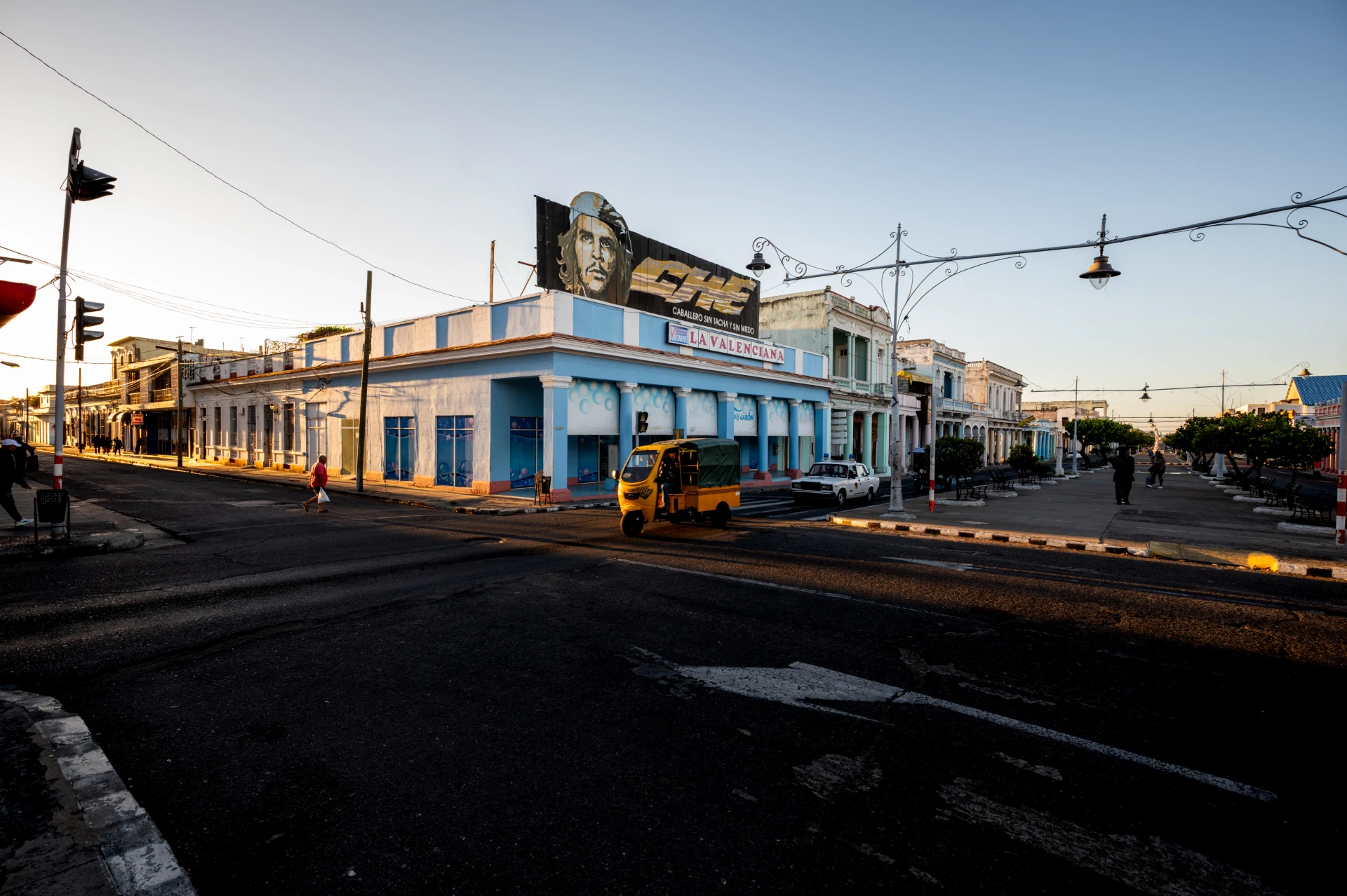 Nous reprenons la route vers Cienfuegos, à un peu plus de deux heures de voiture. Changement d’ambiance : ici, l’architecture coloniale tranchera avec la tranquillité presque figée de Playa Girón. Blottie au fond de la plus grande baie de Cuba, Cienfuegos dégage un charme discret, mêlant élégance et douceur de vivre. L’empreinte de son passé français se retrouve dans ses bâtiments néoclassiques, ses grandes avenues bordées de palmiers et ses maisons pastel ornées de balcons en fer forgé.