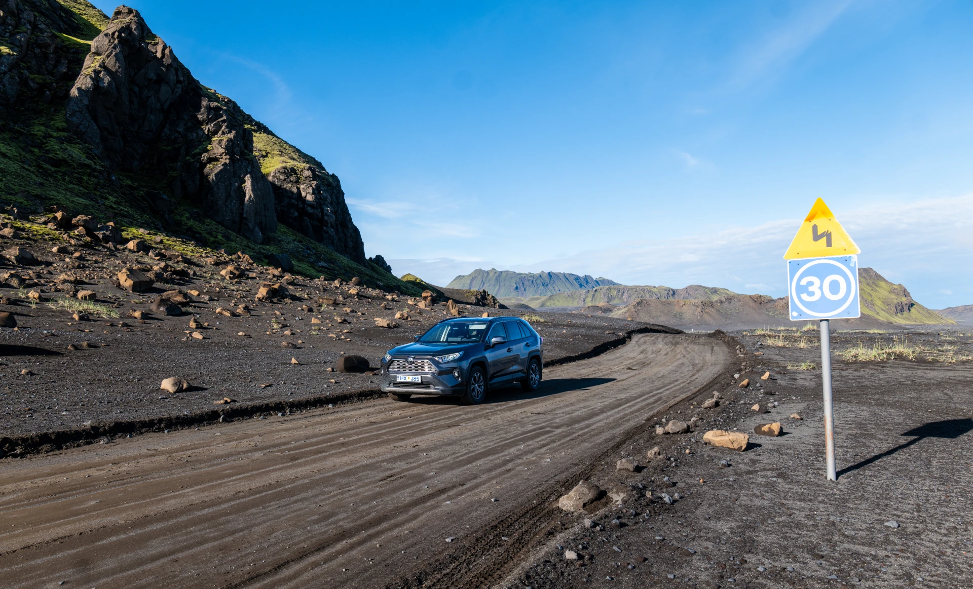 Après avoir récupéré ma monture tout-terrain à l’aéroport de Keflavik, je me dirige vers les Hautes Terres en empruntant la F-208 Nord via Selfoss. L’accès par le Sud est également possible mais plus difficile avec des passages de rivières, tandis que par le Nord, bien que la route soit cabossée, elle est plus accessible. La route F-208 Nord est goudronnée jusqu’aux cascades de Sigoldufoss, puis devient une route de terre. Les cascades de Sigoldufoss méritent un arrêt ; il n’est pas nécessaire de marcher pour y accéder.