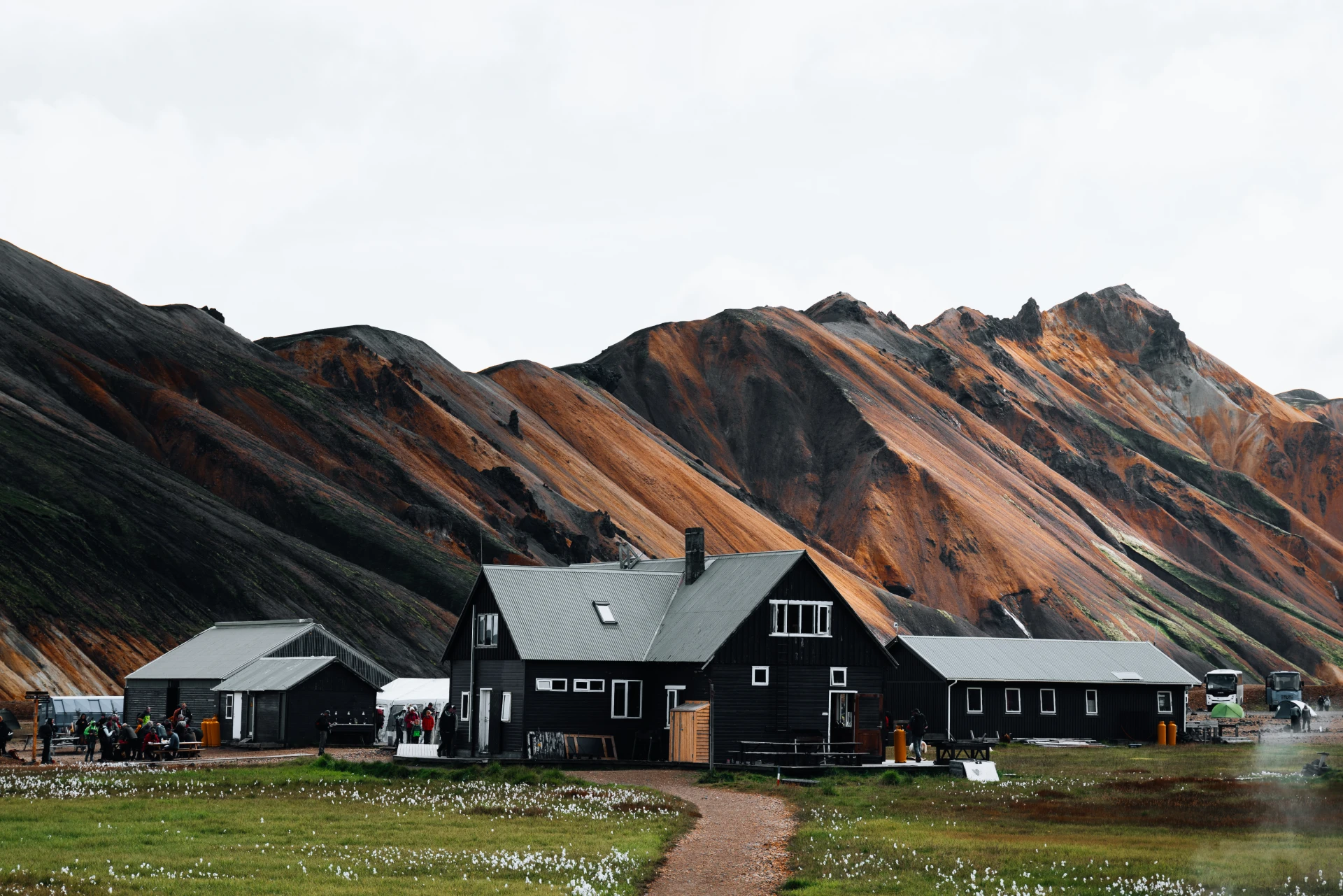 Arrivé au bout de la F-208 Nord, on arrive au Visitor Center et le camping de Landmannalaugar. Pour les petits 4×4, il est recommandé de se garer avant de traverser la seule rivière de la route. Bien que les Hautes Terres soient moins fréquentées que le reste de l’Islande, le site reste très prisé en été.